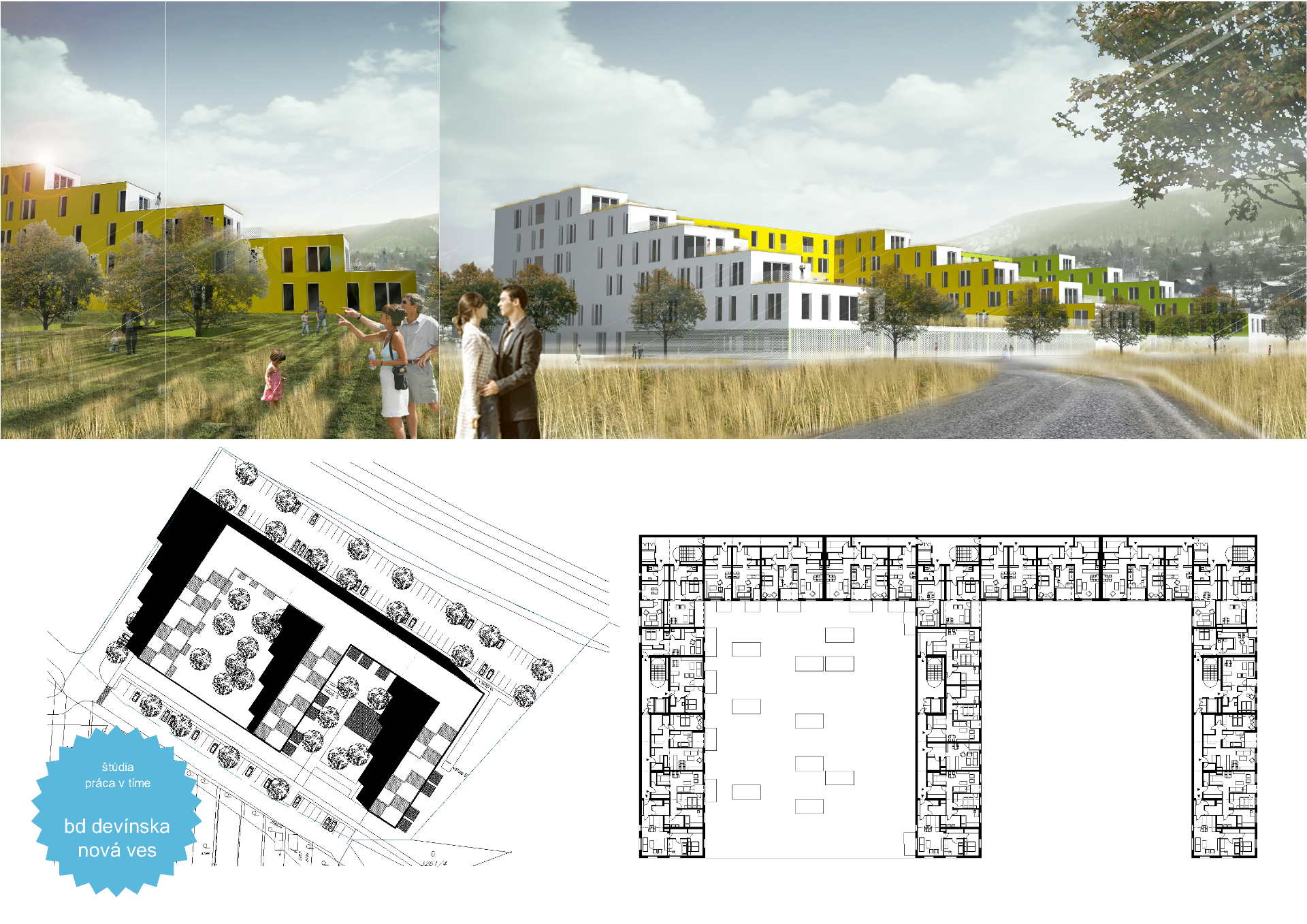 Návrh podzemných garážií, dispozícií bytov a vypracovanie projektovej dokumentácie, pre stavebné povolenie, v rámci kolektívu architektonického ateliéru.
